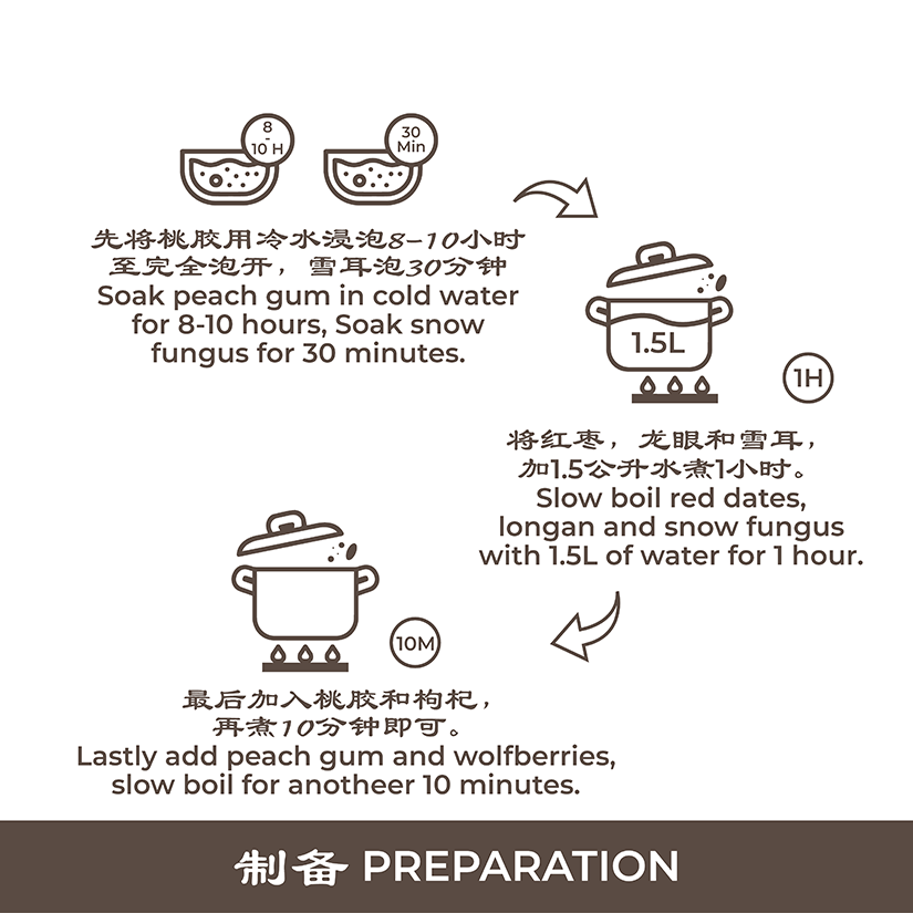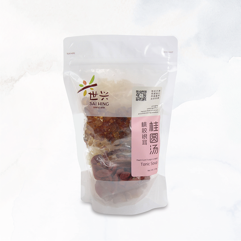 Sai Hing Peach Gum Fungus Longan Tonic Soup 世兴桃胶银耳桂圆汤 110g (For 4 pax)