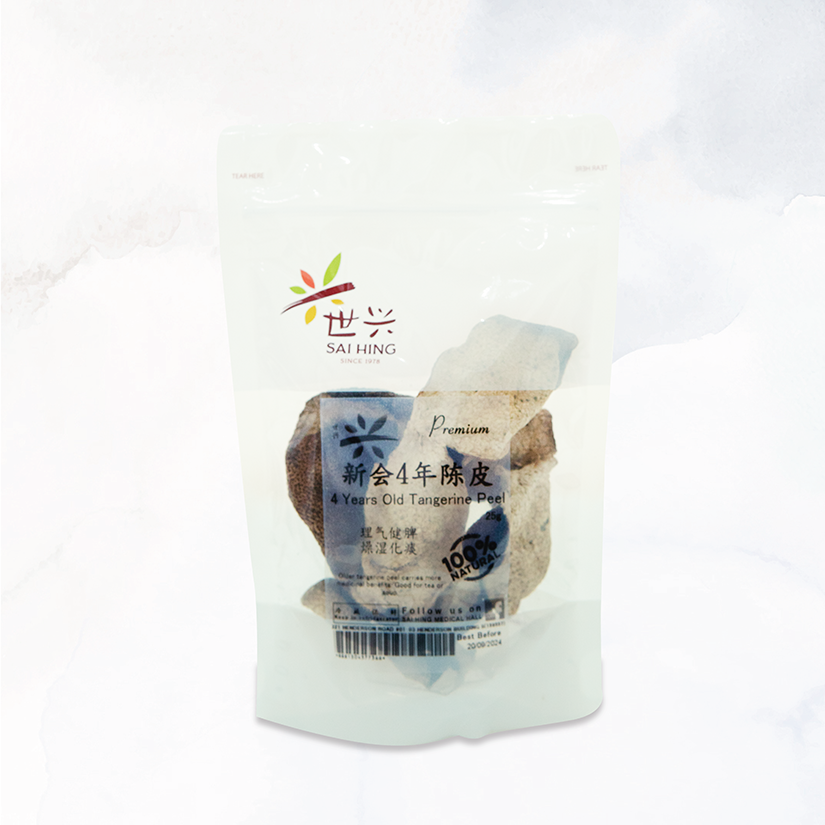世兴新会4年陈皮选用优质新会陈皮,经过三年时间的陈化和精心加工而成,每袋25克。陈皮色泽黄橙,外观光滑,质地韧性十足,具有浓郁的陈皮香气。世兴新会3年陈皮可用于煲汤、煮茶、烹饪等多种用途,为您的烹饪增添独特的风味和香气。
