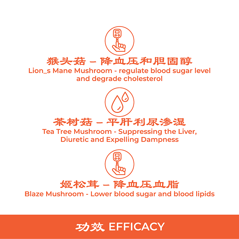 - 茶树菇:含有丰富的钾、钙等矿物质,有助于降血压、润肾护肝,并具有抗衰老的作用。