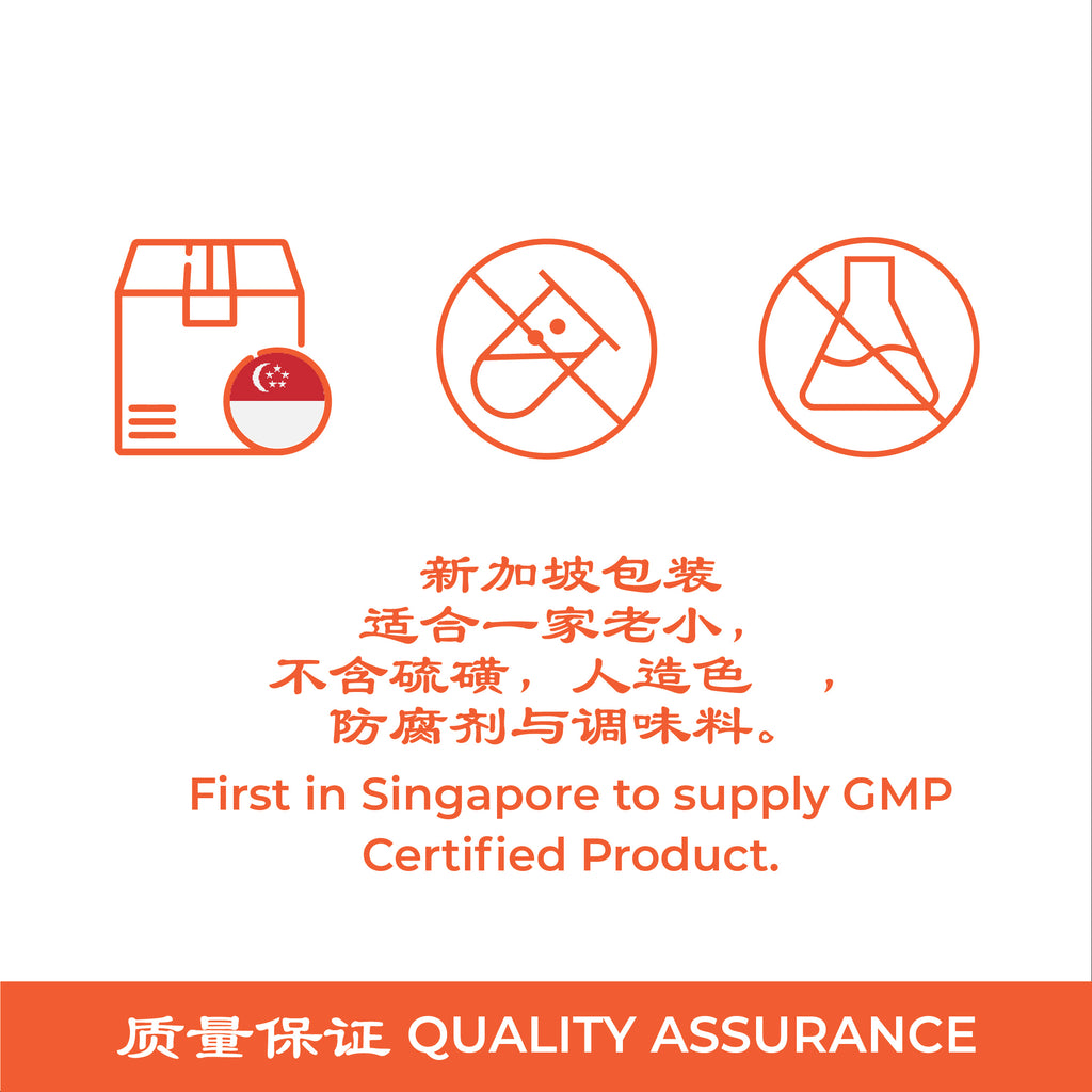 新加坡首家提供GMP认证产品的公司,由世兴药业私人有限公司制造。新加坡制造,适合全家人的养生产品。不含二氧化硫、人造香料和防腐剂,确保天然安全的消费体验。