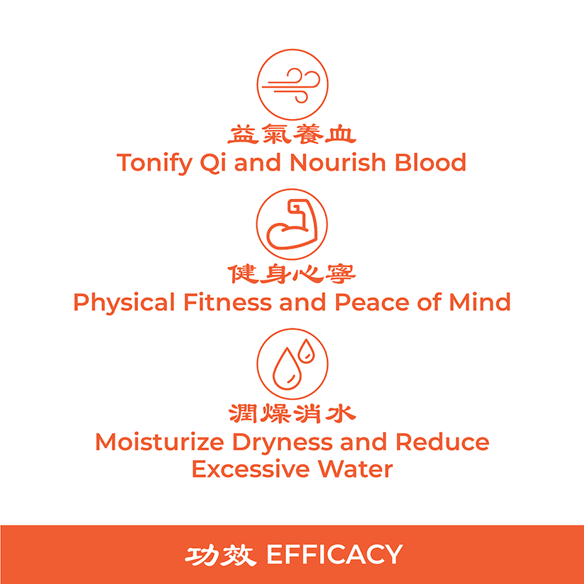 功效:益气养血,身体健康,心灵平静,保湿干燥并减少过多的水分