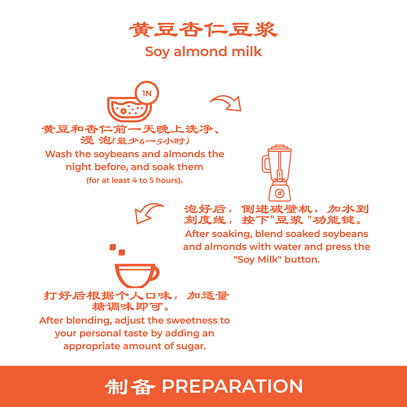 1. 前一天晚上将黄豆和杏仁洗净,浸泡至少4-5小时)